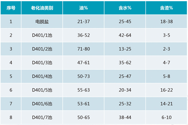 石化公司有2万吨电脱盐老化油,分析认为老化油主要由泥、水、石油类组成,属于危险废弃物。其中含油量在30%左右,如果能够回收,不但会减轻环保压力,同时还会产生可观的经济效益。